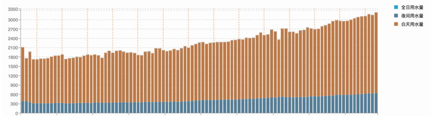 A区的一个第三级计量分区A-1以居民用户为主,管理初期日用水量为1700左右。A-1区接入系统管理后,经过数据验收后对漏损严重程度进行评估,漏损程度为B级,漏损程度较为严重。